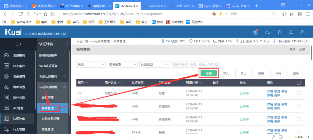 根据友人提出的需求,我为朋友设计了两套认证方案:针对使用有线网络进行上网的,可以直接使用PPPoE进行拨号,或者可以通过Web进行认证;针对移动端,使用PPPoE的操作比较复杂,因此建议只能通过Web的方式进行认证。(爱快支持PPPoE、Web、微信等认证方式)。